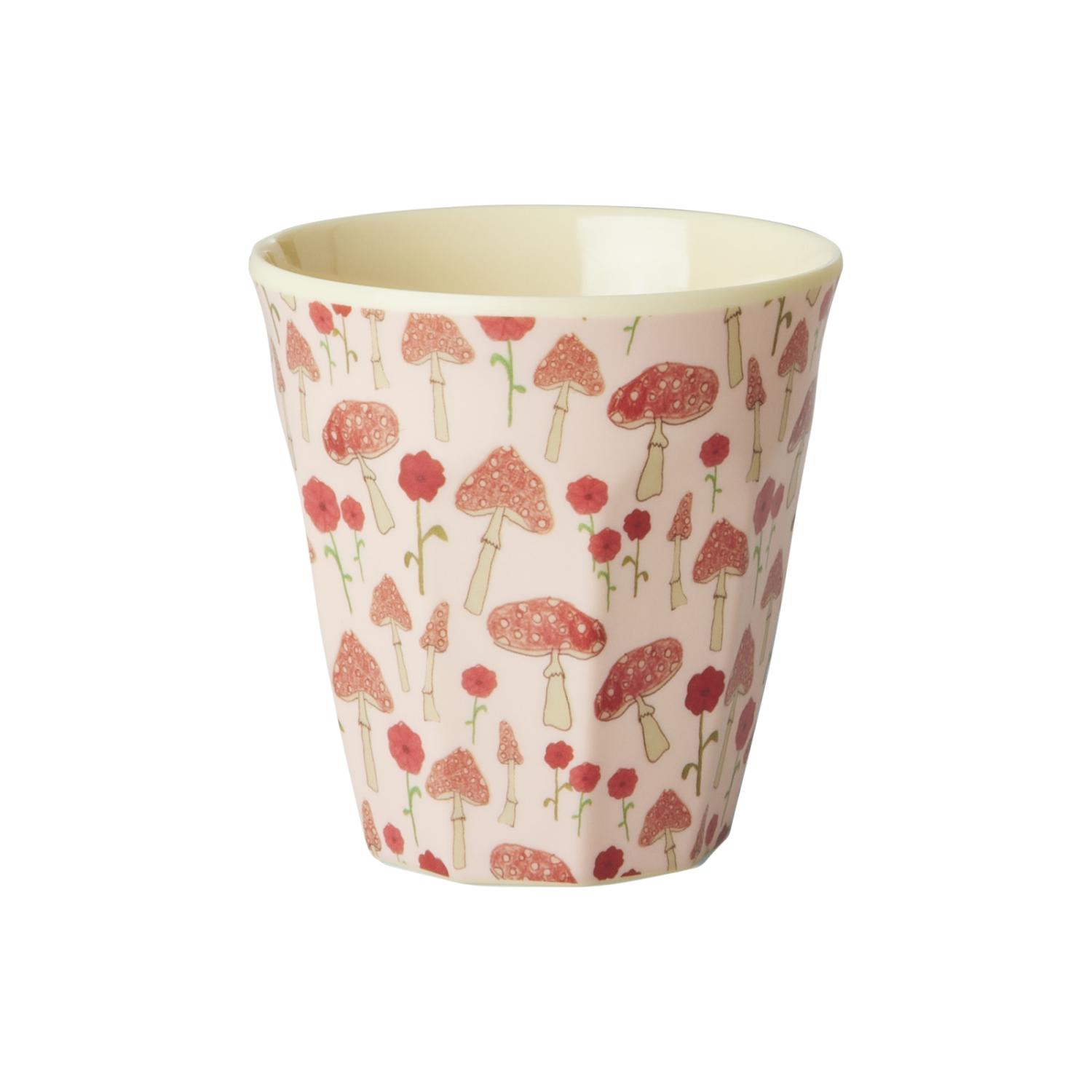 Melaminbecher mit Fliegenpilzen & roten Blümchen