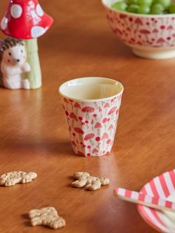 Dieser verspielte Becher mit Pilz- und Blumenmotiv bringt sofort gute Laune! Ob für Kinder oder Erwachsene, zu Hause oder unterwegs – der Becher ist robust, leicht und ideal für jede Gelegenheit. Die Kombination aus cremefarbenem Grundton, roten Blümchen und süssen Fliegenpilzen macht ihn zum charmanten Hingucker.