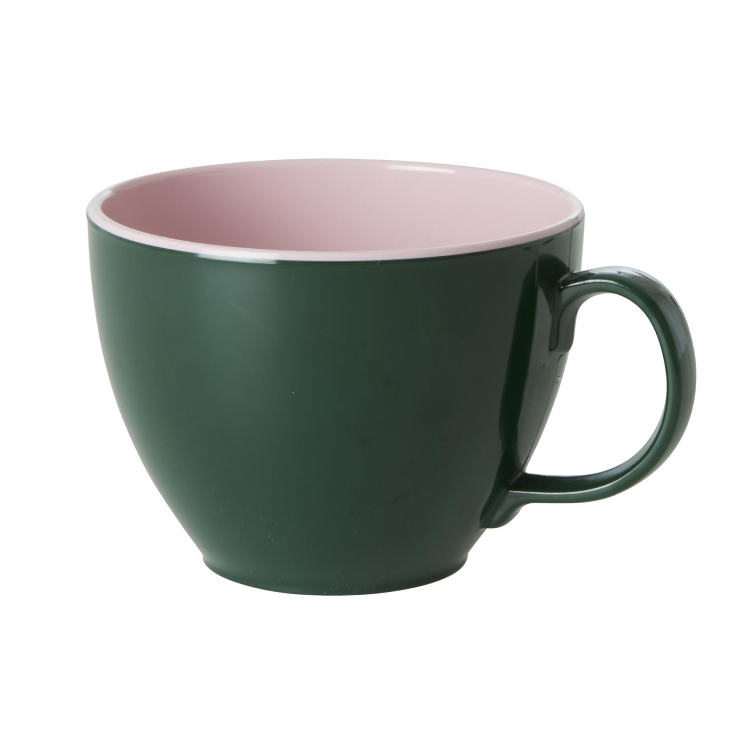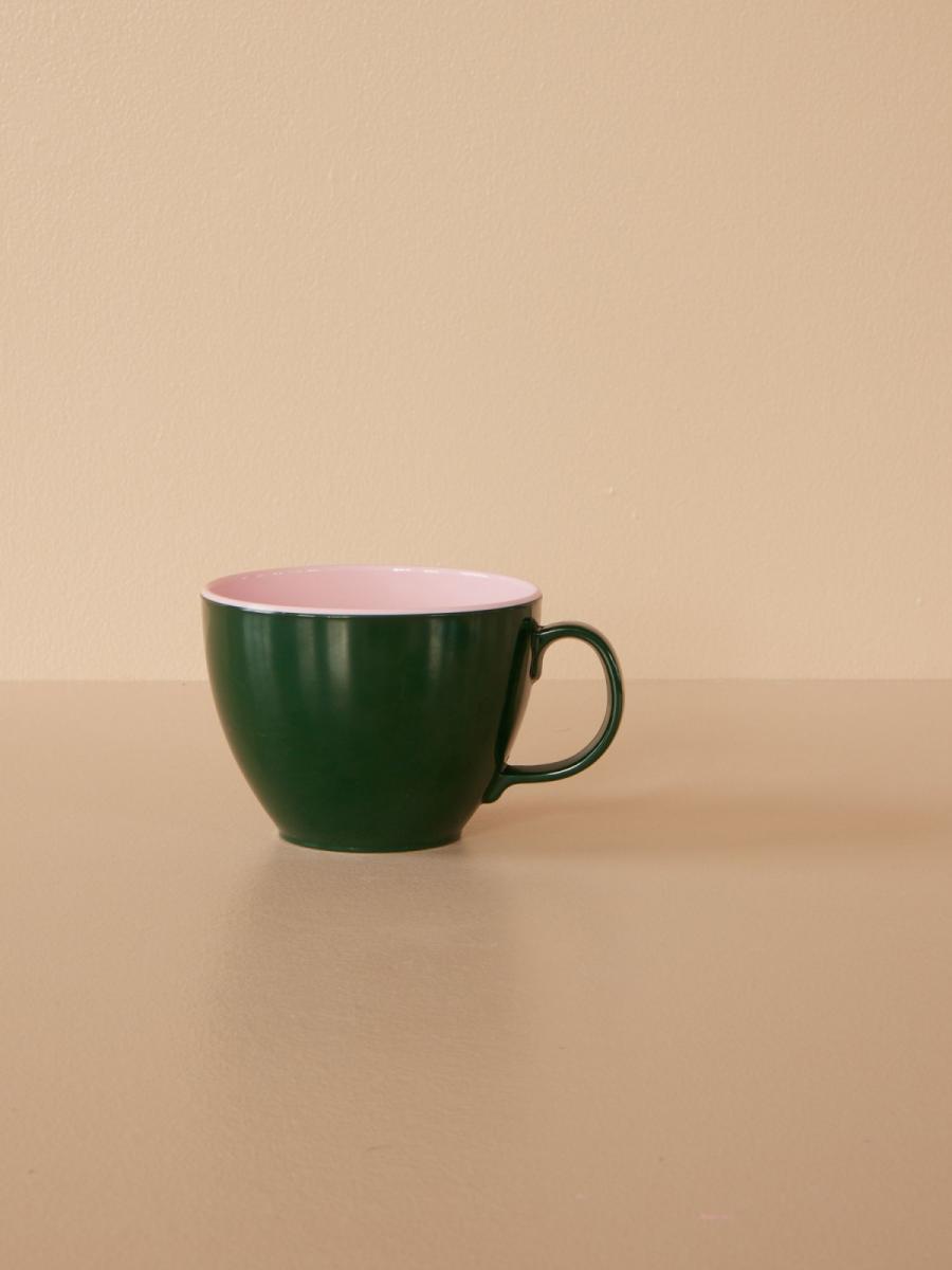 Diese stilvolle Tasse von Rice überzeugt mit ihrem klaren Design und spannenden Farbkontrast: außen tiefes Waldgrün, innen sanftes Rosa. Ideal für Kaffee, Tee oder heiße Schokolade – ob zuhause, im Garten oder unterwegs. Aus robustem Melamin gefertigt – langlebig, leicht & BPA-frei.