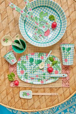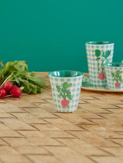 Dieser Becher bringt frisches Gartenfeeling direkt auf den Tisch. Das zarte Karomuster in hellblau kombiniert mit dem witzigen Radieschen-Print macht ihn zu einem echten Hingucker.Aus hochwertigem Melamin gefertigt, ist er leicht, bruchsicher und spülmaschinengeeignet. Mit 250 ml perfekt für Kinder, Snacks oder den kleinen Durst zwischendurch – ob Wasser, Saft oder Milch. Ideal für Zuhause, Picknick oder Camping.