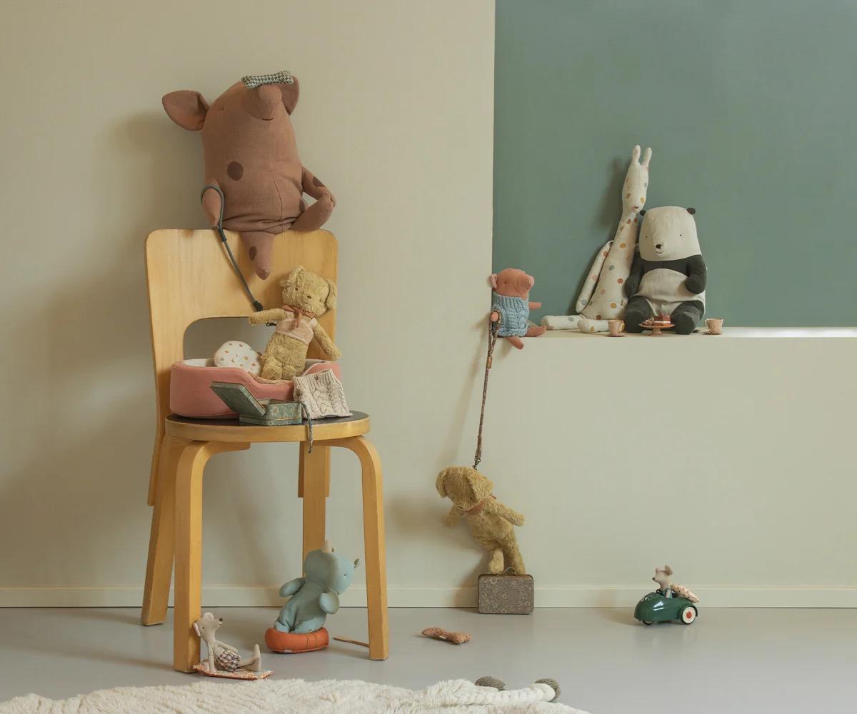 Dieser treue Stoffhund von Maileg ist mehr als nur ein Kuscheltier – er ist ein kleiner Freund fürs Leben. Mit seinem zotteligen Fell im nostalgischen Stil und dem gestreiften Halstuch bringt er Charme ins Kinderzimmer. Ob als Einschlafhilfe, Reisebegleiter oder einfach zum Spielen: Der 30 cm große Hund ist weich, anschmiegsam und genau richtig für kleine Kinderhände. Ein liebevoll gestaltetes Geschenk für Kinder (oder nostalgische Erwachsene!).