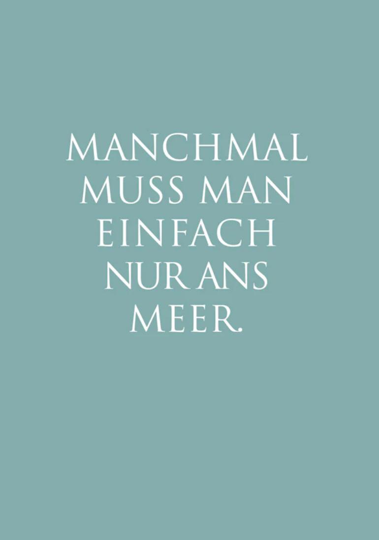 Manchmal muss man einfach nur ans Meer.“ – diese Postkarte trifft mitten ins Herz. Ob als kleine Auszeit für die Seele, als Deko im Zuhause oder als liebevolle Botschaft an jemanden, der eine Meeresbrise braucht: Diese Karte bringt Fernweh und Ruhe auf den Punkt.