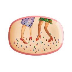 Unser rechteckiger Melaminteller im "Dancing Legs"-Print. Er ist einzigartig in Print und Form, praktisch und kann für so ziemlich alles verwendet werden! Er dient als Teller und als Tablett zum Servieren. Du kannst darauf aber auch Kerzenhalter dekorieren. Bitte beachte, dass dieses Produkt nicht für die Mikrowelle geeignet ist.